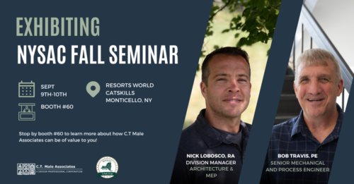 Join the New York State Association of Counties September 9th- September 11th, in Monticello, NY. The seminar will feature workshops, standing committees, affiliate meetings, and plenary sessions. Stop by and visit C.T. Male Associates on September 9th and 10th at our booth to chat with Nick Lobosco and Bob Travis about your project needs!